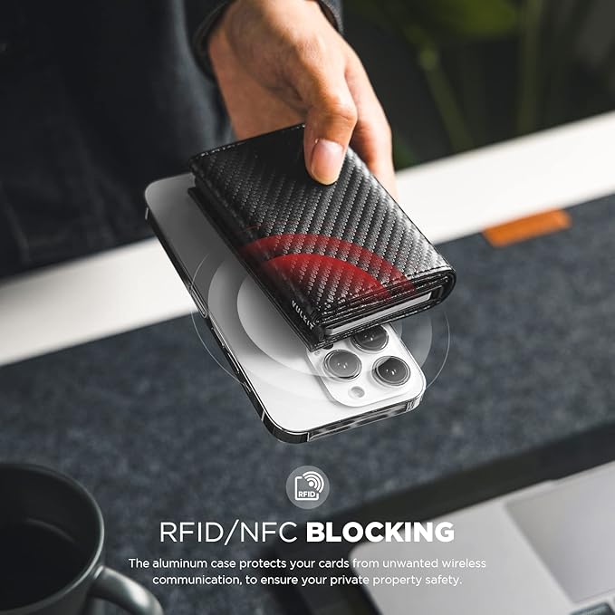 - RFID/NFC Blocking Card Holder- Advanced technology aluminum case protects your cards from unwanted wireless communication and keeps your private property safe.