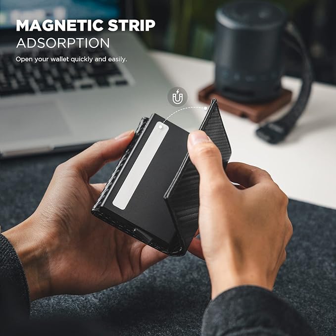 - Smart Wallet for Men - Slide the lever to pop out the cards smoothly and orderly, enabling you to easily access any of the cards. A pocket-size wallet is suitable for put in a front pocket or anything backpack.