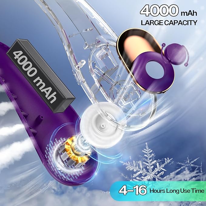 - ❥【3 ADJUSTABLE SPEEDS & 4-16 RUNNING HRS】 You can press the power button to adjust the proper fan speed of the neckfan to meet your needs. Built-in 4000mAh battery provides 4 to 16 hours of operating time.