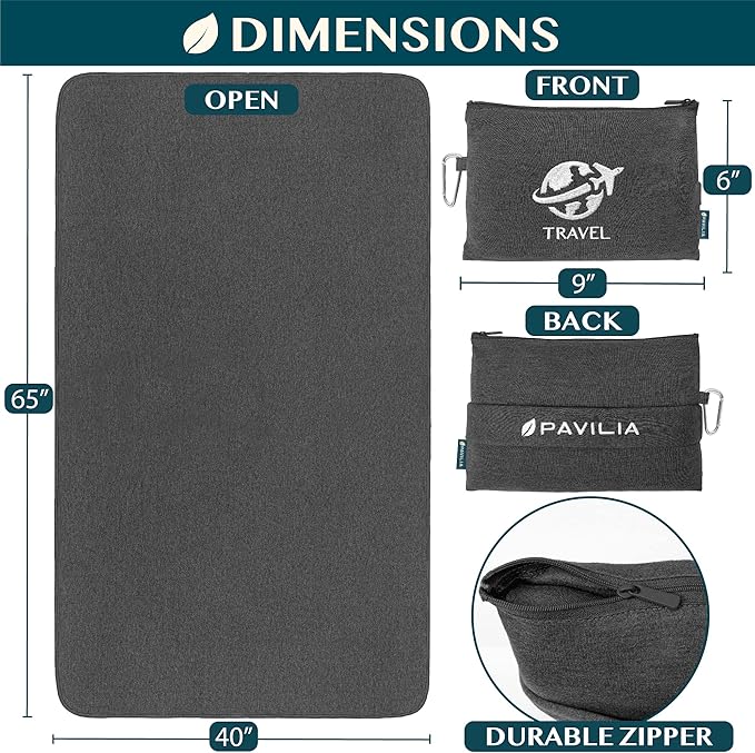 - SUPER SOFT AND WARM: The Black travel blanket airplane is crafted by premium jersey polyester that retains heat effectively yet stays lightweight. Edge stitching design enhances durability, making PAVILIA plane blanket perfect for any travel adventure, car trip