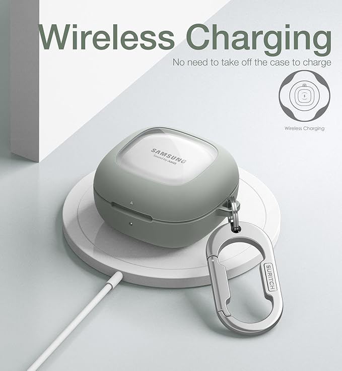 SURITCH Protective Case for Samsung Galaxy Buds FE(2023)/Buds 2 Pro(2022)/Buds 2(2021)/Buds Pro(2021)Buds Live(2020), Shockproof Sturdy Earbuds Cover for Charging Case with Heavy-Duty Carabiner, Green