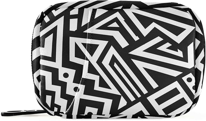 Black and White Geometry Pill Organizer Box Case Container Holder 7 Days Weekly Travel Cute Vitamin Dispenser Sorter Planner Storage Small Compact Men Women