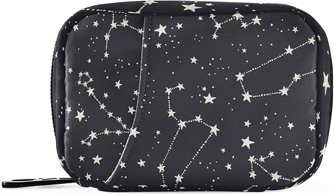 Black Stars Pill Organizer Box Case Container Holder 7 Days Weekly Travel Cute Vitamin Dispenser Sorter Planner Storage Small Compact Men Women
