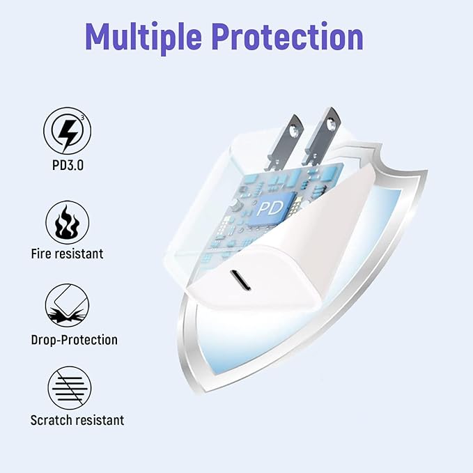 - ⚡【Safety Efficient iPhone Fast Charging】:Fast Charger iPhone is compact and lightweight, making it perfect for on-the-go use. Easily slip it into your bag or pocket and have a reliable charging solution wherever you are.Designed with your safety in mind. It features multiple safety mechanisms to protect against overheating, overcharging, and short-circuiting, ensuring a safe and reliable charging experience.