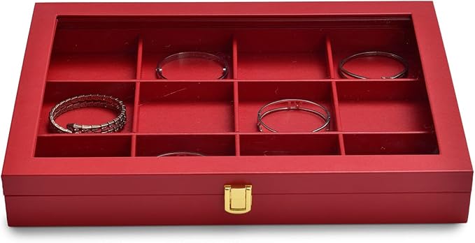 Oirlv 12 Gird Jewelry Tray with Acrylic Lid Premium Leather Jewelry Organizer Box Transparent Lid Bracelet Bangle Storage Case for Women Gift