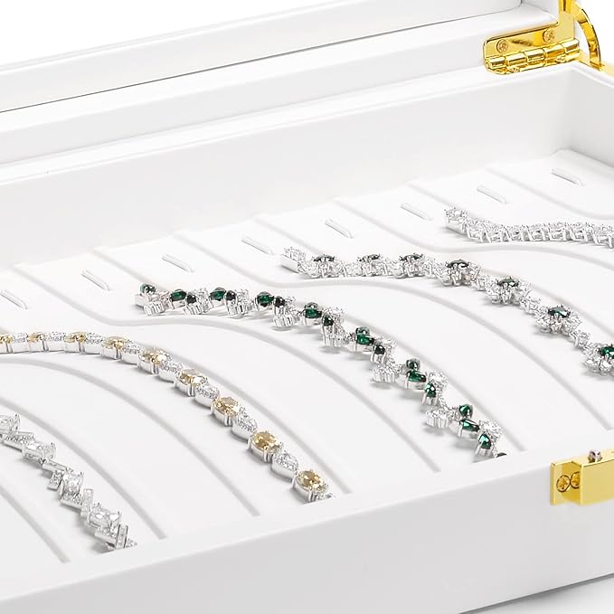 Oirlv White Leather Acrylic Lid Jewelry Necklace Organizer Box Necklace Bracelet Display Holder Case Drawer Insert Women Gift