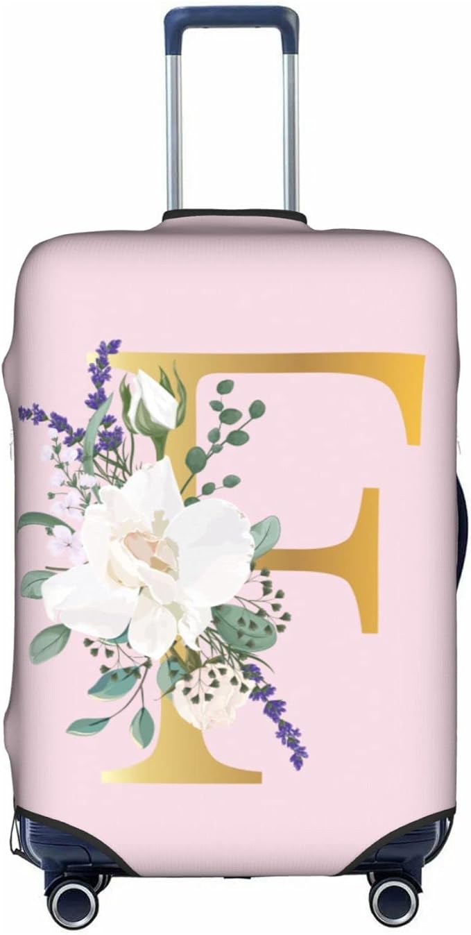 Flower Lette F Pink Luggage Cover Elastic Washable Stretch Suitcase Protector Anti-Scratch Travel Suitcase Cover for Kid and Adult S (18-21 inch suitcase)