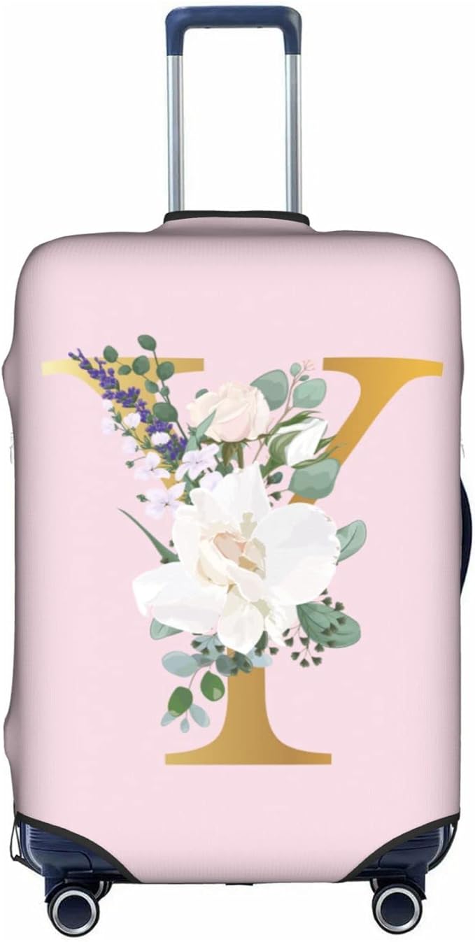 Flower Lette Y Pink Luggage Cover Elastic Washable Stretch Suitcase Protector Anti-Scratch Travel Suitcase Cover for Kid and Adult L (25-28 inch suitcase)