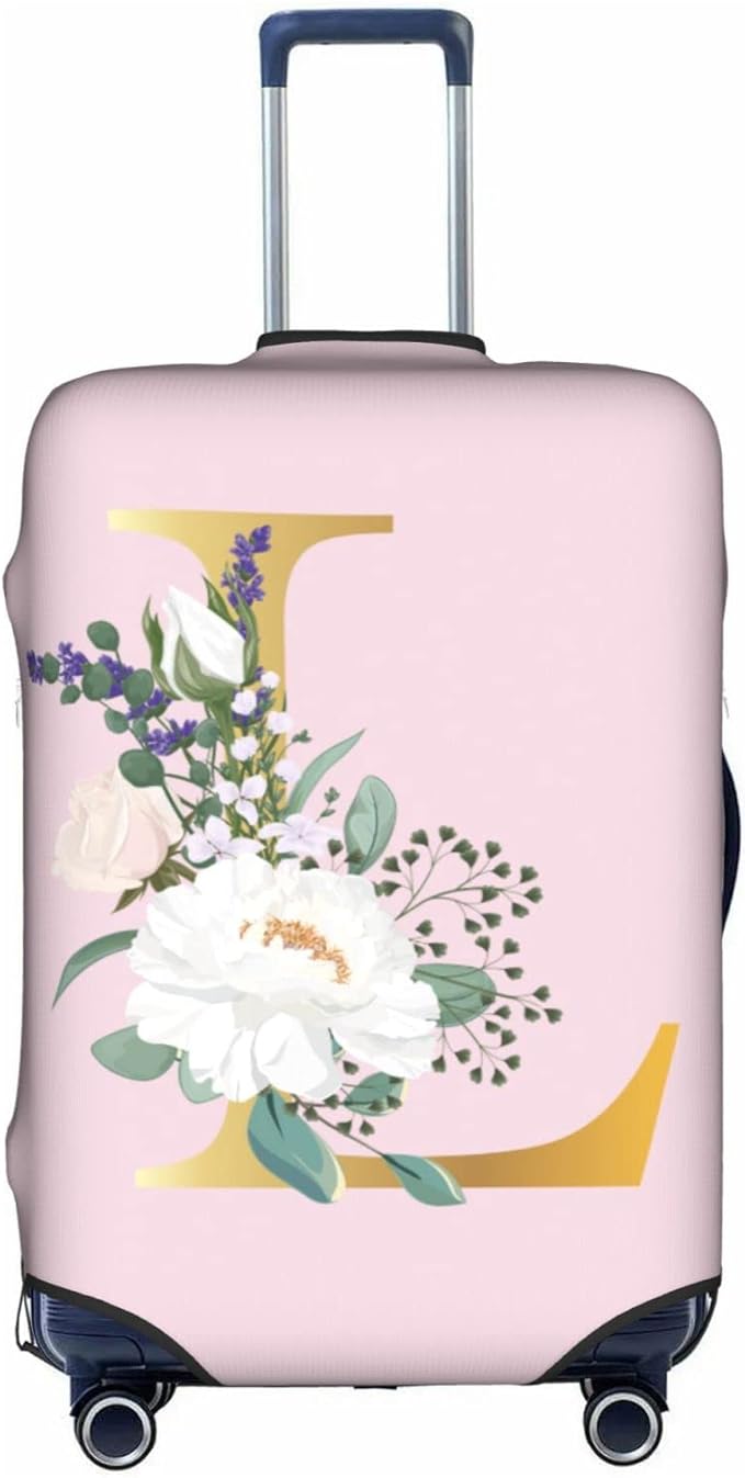 Flower Lette L Pink Luggage Cover Elastic Washable Stretch Suitcase Protector Anti-Scratch Travel Suitcase Cover for Kid and Adult L (25-28 inch suitcase)
