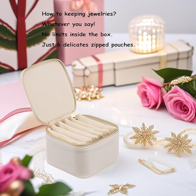 - How to keeping jewelries? Whatever you say! No limits inside the box. Just 6 delicates zipped pouches to keep all kinds of jewelries like earrings, rings, necklaces and so on