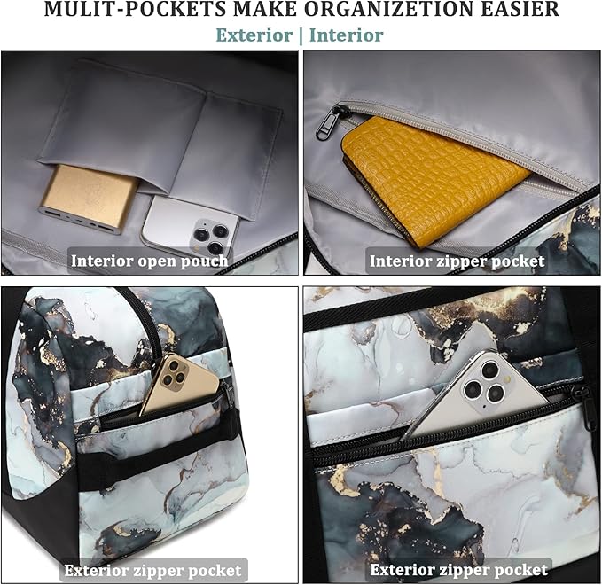 - 【EASY TO CARRY ON】: The sleeve on the back of the gym bag allows them to fit on trolley case. Outside zipper pocket on the back can hold phone, cards or passport. Each overnight bag comes with detachable shoulder strap, can sling it over shoulder. The duffle bag also velcro padded handle at the top for a hand-held design.
