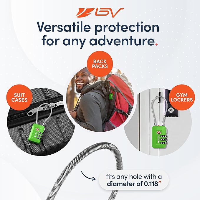 - Resettable to 1,000 Possibilities - Set a combination for your backpack lock that you wonโt forget from 1.000 possible combinations. BV travel locks tsa approved with multiple possibilities.