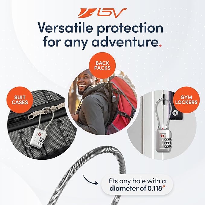 - Resettable to 1,000 Possibilities - Set a combination for your backpack lock that you wonโt forget from 1.000 possible combinations. BV travel locks tsa approved with multiple possibilities.