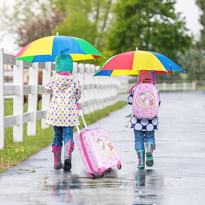 - [ Ideal Gift for Your Kids ]: With the luggage size of 12" x 8.5" x 18” (L x W x H) and backpack size of 9.5" x 5" x 13” (L x W x H), this 2-piece luggage set is an ideal choice for kids when they want to travel or go to school. Moreover, the bright color and cute patterns will definitely attract kids’ attention at first sight. So it is a perfect gift for your kids at Christmas, on Thanksgiving and birthday, and so on.