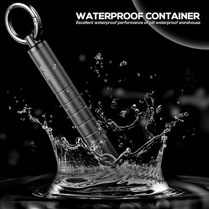 TISUR Small Metal Pill Organizer, Titanium Keychain Pill Holder Travel Pill Box Case Multitool EDC Every Day Carry for Men (Black Titanium)