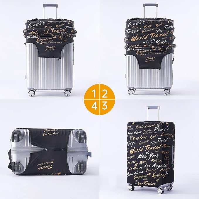Travelkin Luggage Covers For Suitcase Tsa Approved,Suitcase Cover Protector Fit 18-32 Inch Luggage (World City, S)
