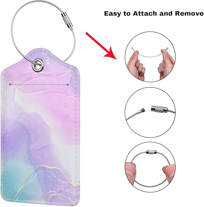 - ※ Quality Material: The Suitcases tags are made of high-grade PU leather, it feels soft and comfortable. Lightweight and durable, and can be bent. Removable steel loops make it easy to attach and remove the tag from luggage or bag, never have to worry about them getting ripped off, suitable for long-term reuse!