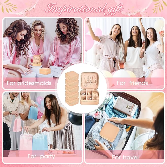Taiyin 6 Pcs Travel Jewelry Case Box Bridesmaid Gifts Bulk Travel Jewelry Cases Boxes Small Jewels Organizers Mini Accessories Ornaments Storage for Women Girls Wedding Gifts (Beige)
