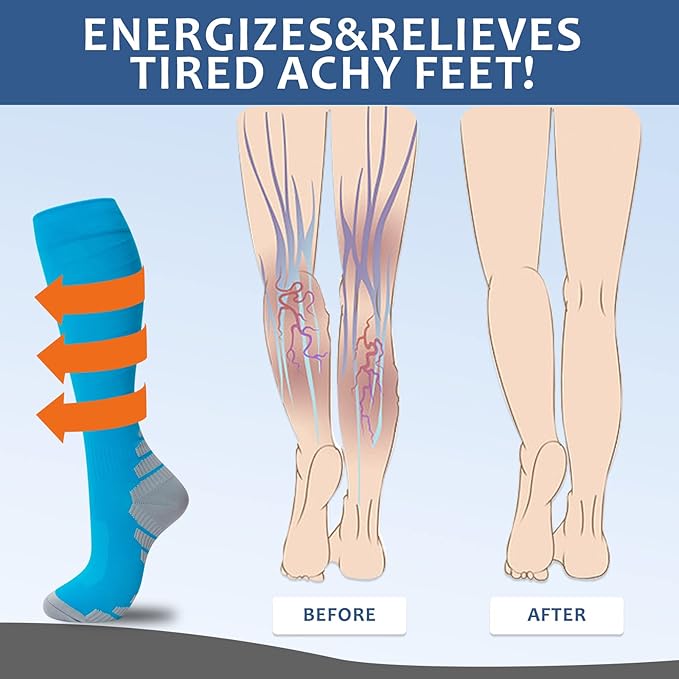 • SOCKS FOR WOMEN: 20-30mmHg circulation compression socks are with moderate compression and are recommended by doctors and trainers. Nurse compression socks create the highest support pressure at the ankle and gradually decrease along the legs, making your legs more comfortable.