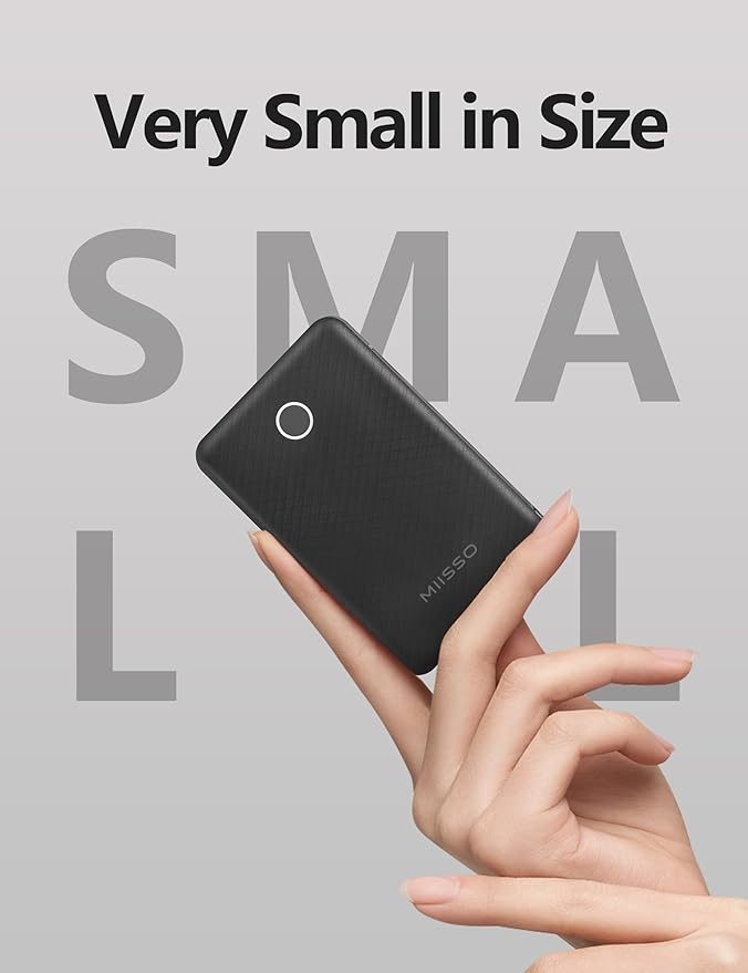 - Credit Card Size: It is the slimmest and the smallest of MIISSO portable chargers with cables, only 0.27lb(122g) and its body like a credit card. The lightweight design lets you take it out without pressure. It's slim enough to put it in your pocket or in your handbag