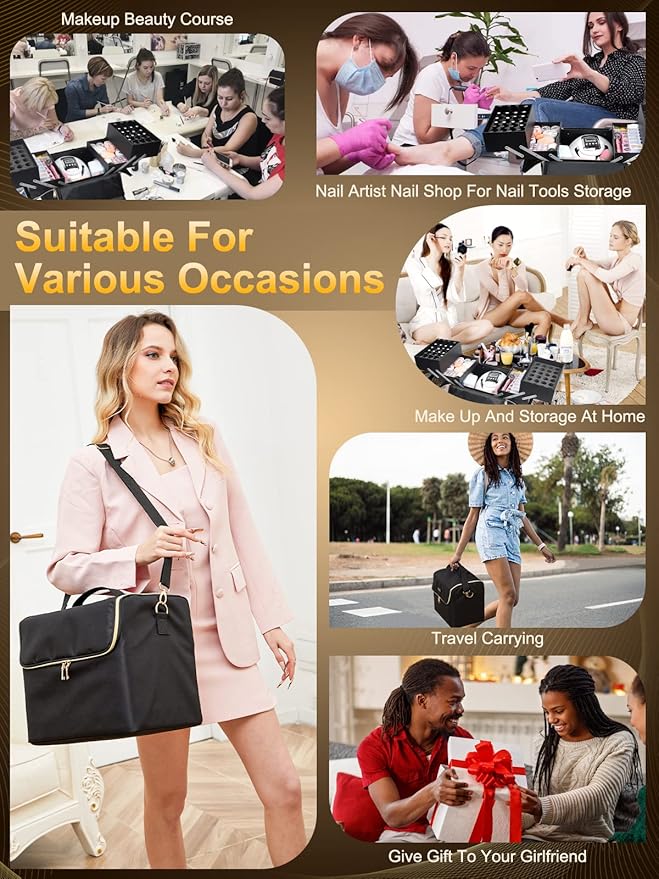 - 【Multipurpose Makeup Storage Organizer Case】: Our nail tech travel case not only can storage your cosmetics or nail tools, but also Jewelry, electronic accessories, camera, essential oil, toiletries. A must-have for professional makeup artist, nail artist, beginners! Your little girls, girlfriend or beloved ones would be happier when receiving such a nice gift on Valentine's Day, Christmas, New Year, Birthday, Wedding and so on.