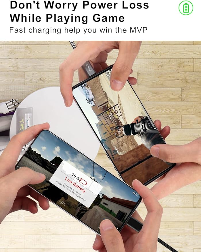 - [Safety & Reliable QC 3.0 Fast Charging]: This New 10 foot USB-C charger cable support QC 3.0 Fast Charging, charging your phone quickly and efficiently, works as good as original cables. Built-in 56kΩ pull-up resistor and strong metal connections protect your devices and charging adapters from damage.