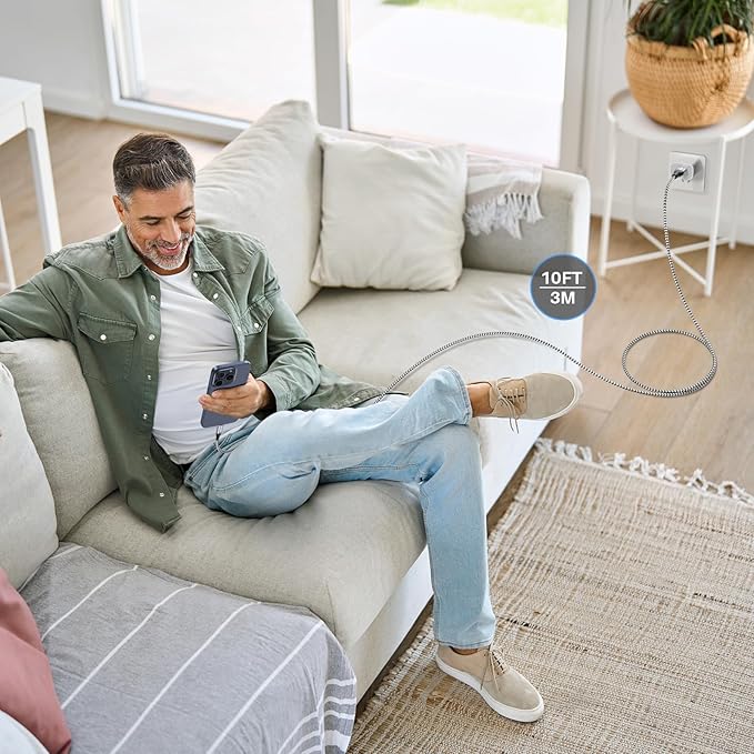 - [Ultra-Long Transfer Distance]: This extra long 10FT/3M usb c cables prevent you from being limited to where you can go while you use your device and charge at the same time. You can use it in the office, living room, bedroom, and charge your mobile phone at any time. Also you can operate your phone freely while lying on the couch watching, playling games, making phone calls, etc.