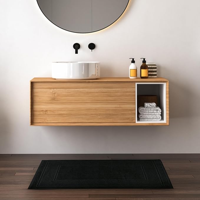 - EXQUISITE DESIGN: The Jacquard weave and double-stitched pattern adds elegance to your space. Avalon Towels bathroom floor mats enhances décor while being soft and stylish.