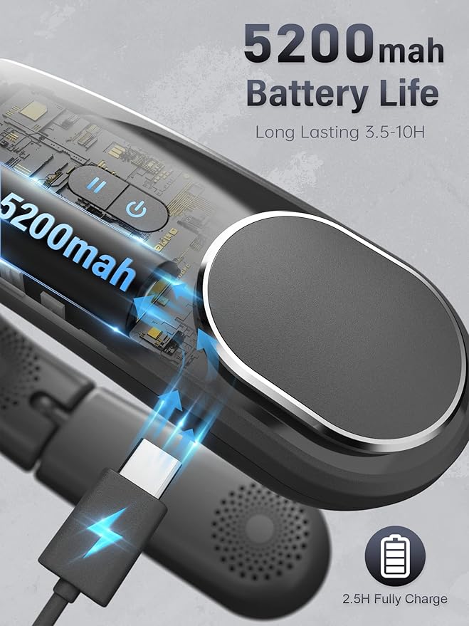 - Long-lasting Performance - Stay cool and comfortable for hours on end with the portable fan's 5200mAh battery life, providing you with uninterrupted cooling relief on a single charge, perfect for any outdoor or indoor activity.