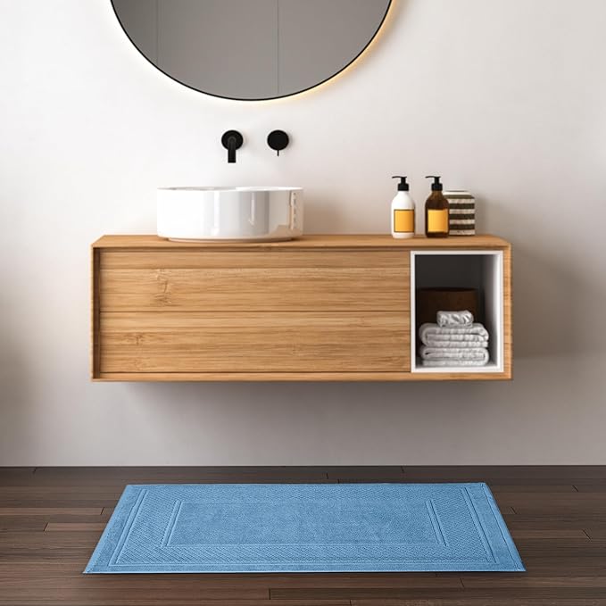 Avalon Towels Light Blue Bath Mat - 100% Cotton Set of 2 Absorbent Bathmat - Bathroom Mats Quick Dry Bath Mats for Bathrooms (22x34 Inches)