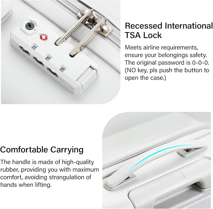 - 【Durable Spinner Wheels 】 Suitecase with spinner wheels for upright 360º mobility for free-weight rolling, it is composed of precision shaft center and thickened TPE wheel skin, which is very wear-resistant,quieter and has strong bearing capacity, It is applicable to different roads such as cobblestone road and carpet road.
