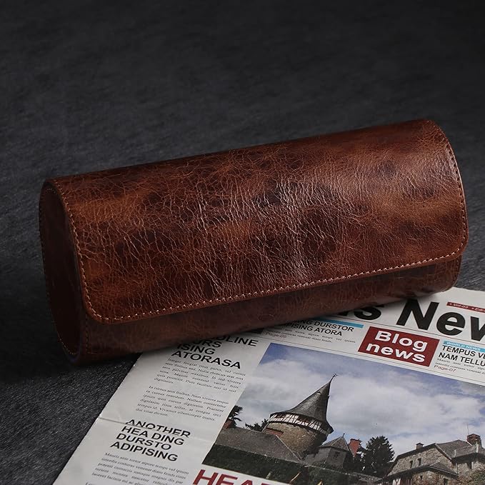 Genuine Napa Leather Watch Roll Travel Case for 3 Watches - Travel Watch Rolls and Leather Watch Display Cases with Velvet Interior - Watch Storage Organizer Men's
