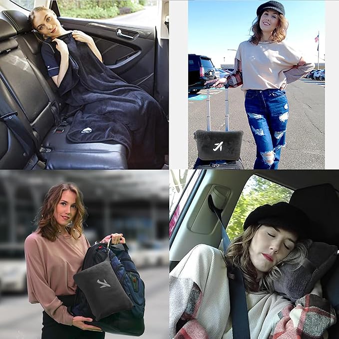 - 2 in 1 Travel Blankets/Throws for Both Indoors and Outdoors: These lightweight, portable travel blankets are an excellent choice for all outdoor activities and vacations, including flights, buses, cars, trains, camping, hotels, dorms, and concerts. The blanket pillow combo can also be used as a couch throw while binge watching or relaxing at home.