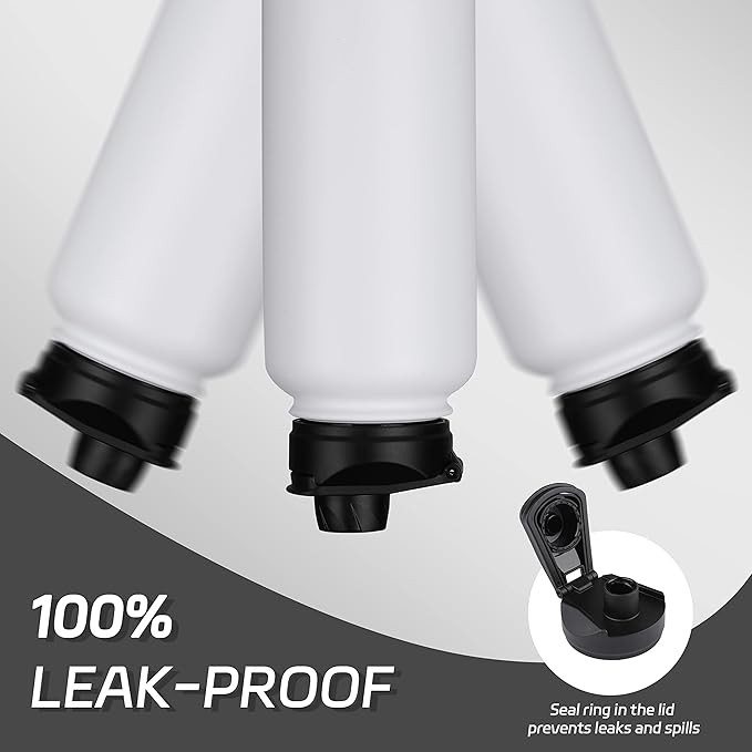 HASLE OUTFITTERS 40oz Stainless Steel Water Bottle, Vacuum Insulated Double Walled Leak Proof Sports Water Bottle with 2 Lids (Straw and Spout Lid) Thermo Mug Keep Cold and Hot(White,1)