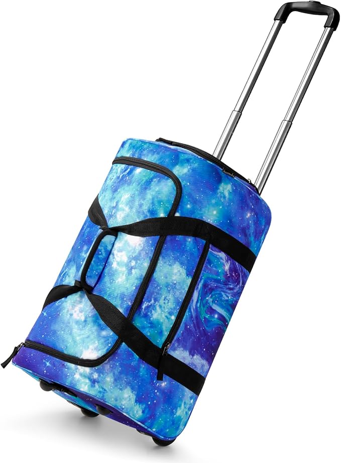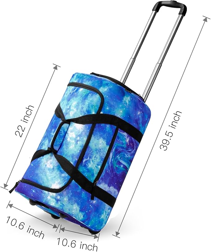 Choco Mocha Boys Galaxy Suitcase with Wheels Kids Blue Rolling Duffle Bag for Camping Teen Boys Toddler Luggage Bag for Travel, 22inch