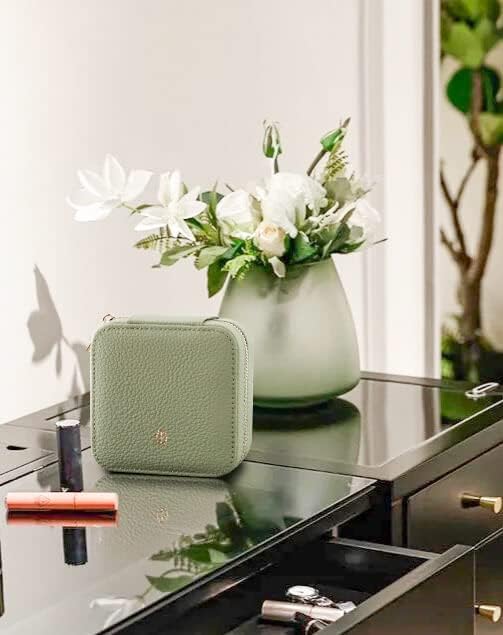 S.Leaf Travel Jewelry Organizer Boxes for Women Small Portable Necklace Earrings Bracelet Rings Travel Case Best Friend Birthday Gifts for Women Trendy (01_Lychee_Sage_Green)