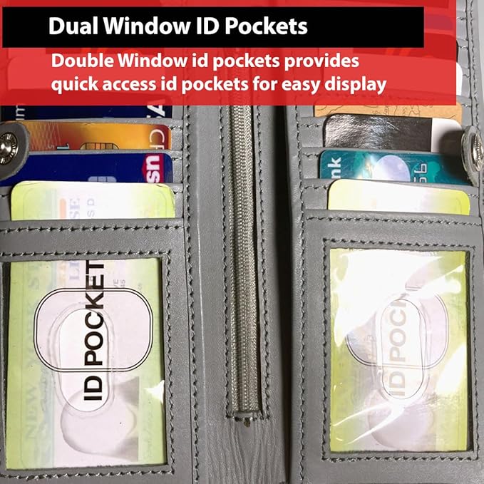 - DIMENSIONS: 7"x 3.5" (folded), 7"x 7" (unfolded). This slim yet spacious chain wallet is designed for convenience and security. It features 16 credit card slots, 2 clear ID windows, and a roomy currency compartment to keep your bills flat and protected.