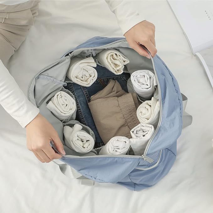 - ☆ PACKABLE DESIGN: Lightweight luggage duffle bags can be reached on any trip as a handy travel companion. The bag is spacious enough for you to fit your things in. When you not use, this bag can be folded into a small cylindrical pouch to save your space. Perfect for organizing your travel luggage and documents or other articles of daily use. It is a must have travel bag for convenient, safe and smart travelling, and the best gift for your friends and family.