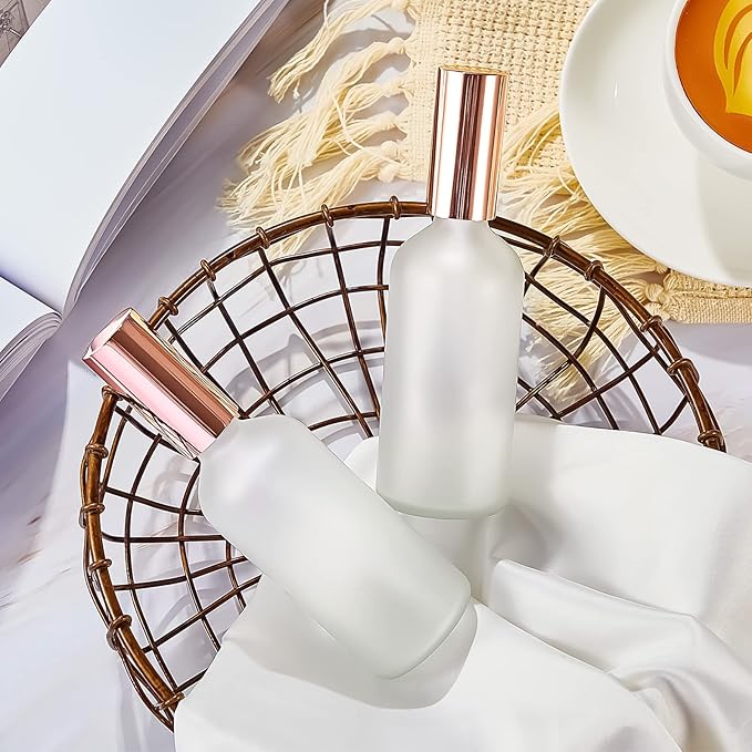 - Elegant Frosted Design: our fine mist spray bottles are designed with frosted glass body and rose gold cap cover, which is exquisite and elegant, not only a perfume bottle, but also a good ornament on your dressing table, and the frosted design can avoid inner liquid contact with light directly, bringing convenience to your storage