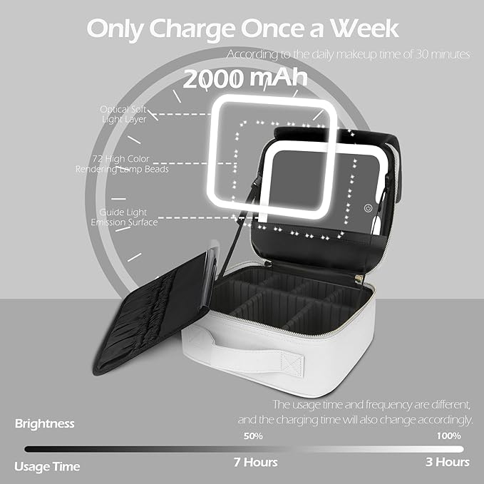 - 💡【Detachable Smart Fill Light Mirror】Enhance your makeup routine with this smart fill light mirror featuring adjustable light intensity and a memory function. The 360° adjustable mirror stand ensures no angle is missed, while the touch switch offers cool, natural, or warm light options for true-to-life makeup application. Say goodbye to battery worries with its long-lasting 2000mAh battery.