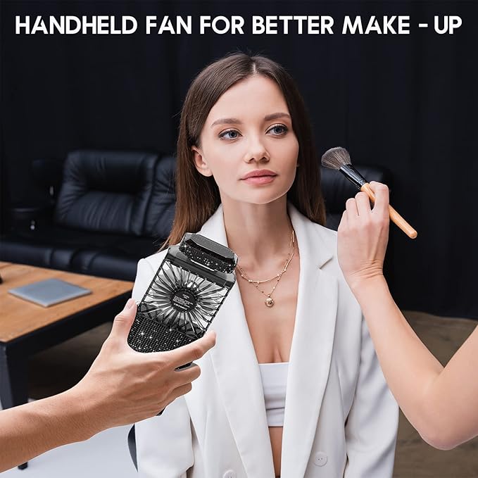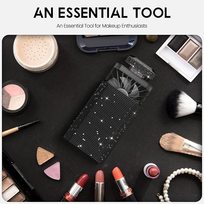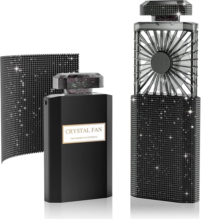 LIGHTDESIRE DIY Bling Crystal Rhinestones Handheld Fan, Mini Personal Fan, Cooling Small Fan Rechargeable 3 Speeds Mode with Crystal Rhinestones Sticker Sheet(Black Fan with DIY Diamon)