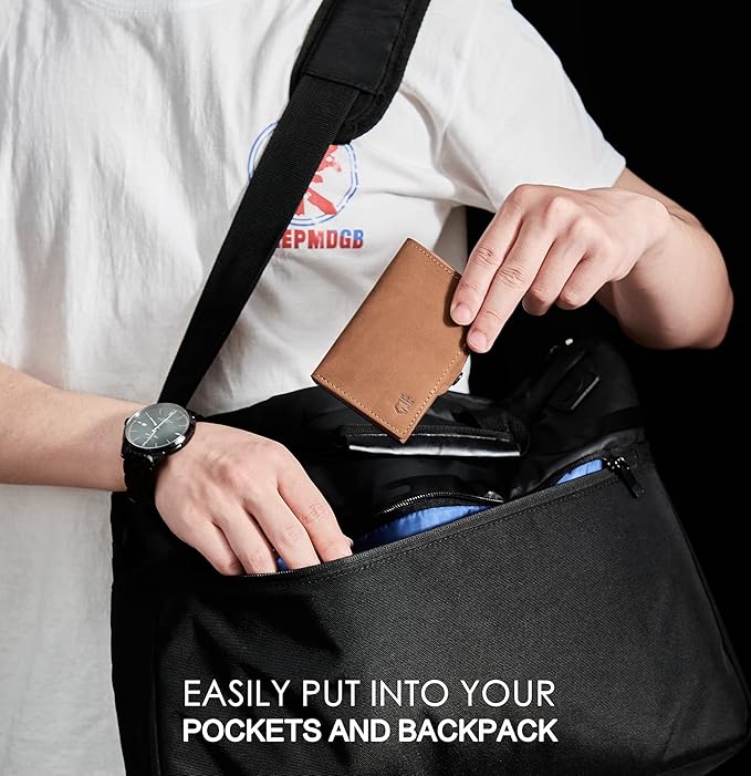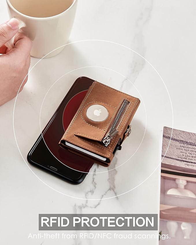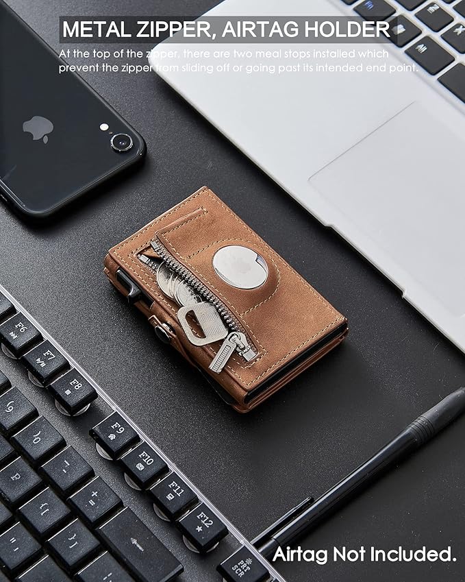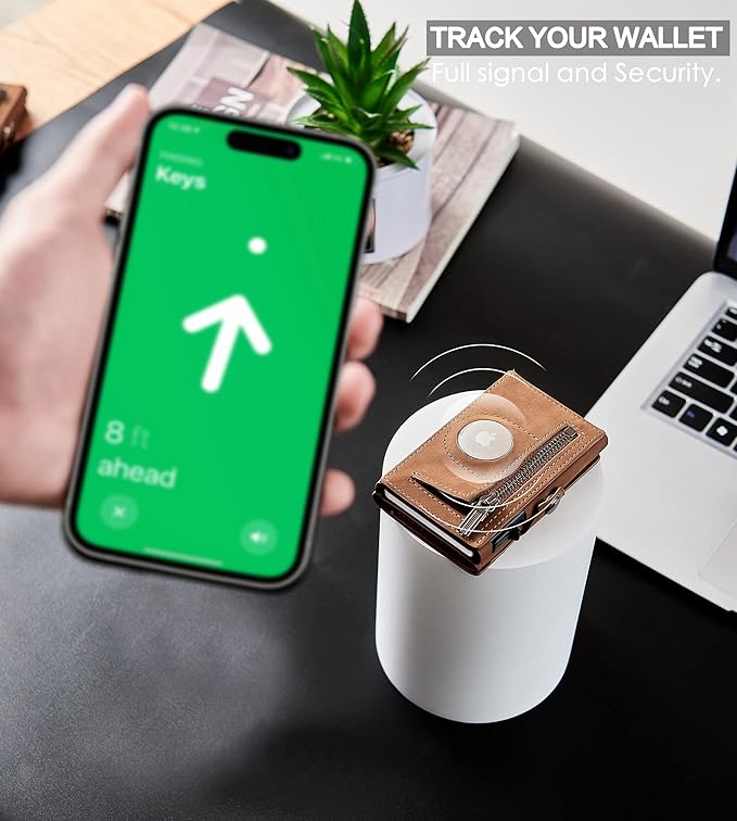 - [ Airtag Wallet Holder ] - This slim men's wallet has a built-in pocket for you to tuck in your Airtag tracker.(Airtag NOT Included). Put your AirTag into the protective case and lock it tightly, you can track your wallet through Find My APP. An AirTag Wallet will help ensure your cash, cards, and ID will always be close by and won't get left behind. Excellent sound transmission and Full signal for your Airtag. Order it now and Track your wallet down !