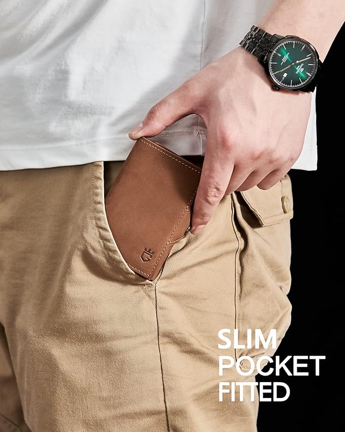 Men's Slim Wallet, Brown 3.0, 100% Full Grain Leather, RFID Protected, Airtag Wallet Holder, 3" L x 4" W x 0.8" H