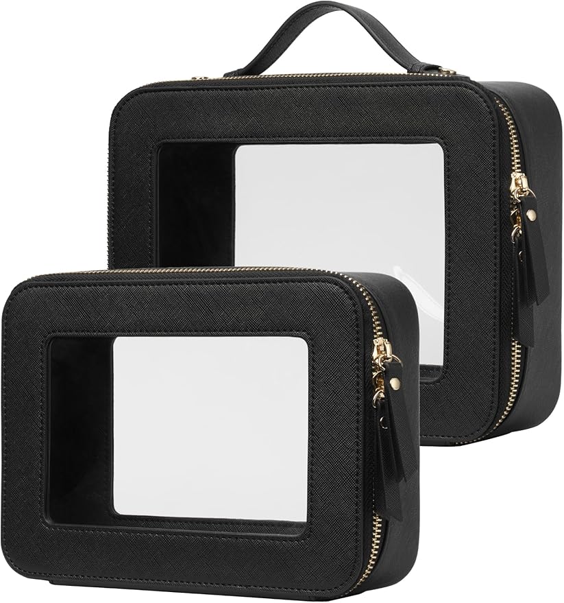 - [Two-Piece Set] – The clear bag set consists of two different sizes, specifically designed to separate makeup and skincare products effectively. The medium size measures 8.3'' x 6.1'' x 2.4'' (21cm x 15.5cm x 6cm), the large size measures 9.6'' x 7.5'' x 3.1'' (24.5cm x 19cm x 8cm).