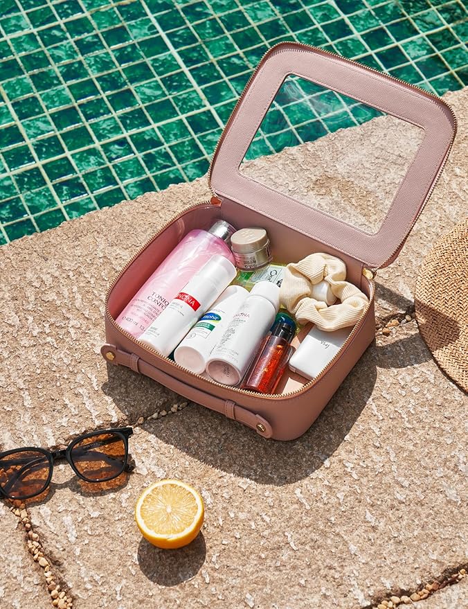 - [Spacious and Roomy] – The pink travel make up bag measures 9.6'' x 7.5'' x 3.1'' (24.5cm x 19cm x 8cm), ideal for extended trips or situations where you need to carry a comprehensive collection of makeup and skincare products. It is designed to fit comfortably in suitcases and big travel bags.