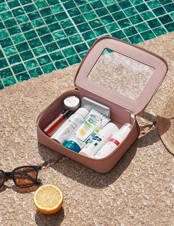 - [Compact and Portable] – The pink travel make up bag measures 8.3'' x 6.1'' x 2.4'' (21cm x 15.5cm x 6cm), designed to offer a compact and travel-friendly solution for organizing your makeup and toiletry essentials. It can be easily fit into a variety of bags, whether you prefer to carry it in a handbag, tote, or travel luggage.