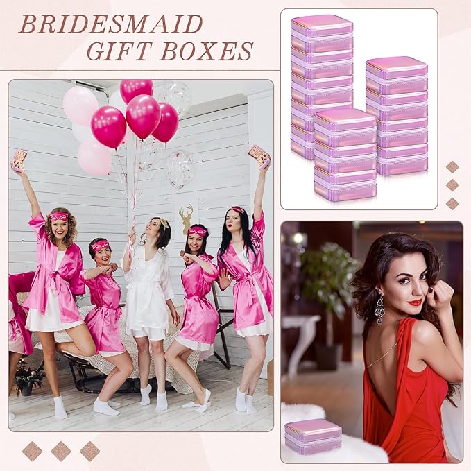 Yinkin 12 Pcs Mini Travel Jewelry Case Bridesmaid Proposal Gift Boxes, Small PU Leather Earring Organizer, Bulk Travel Accessories Portable Jewelry Holder(Glossy Pink)