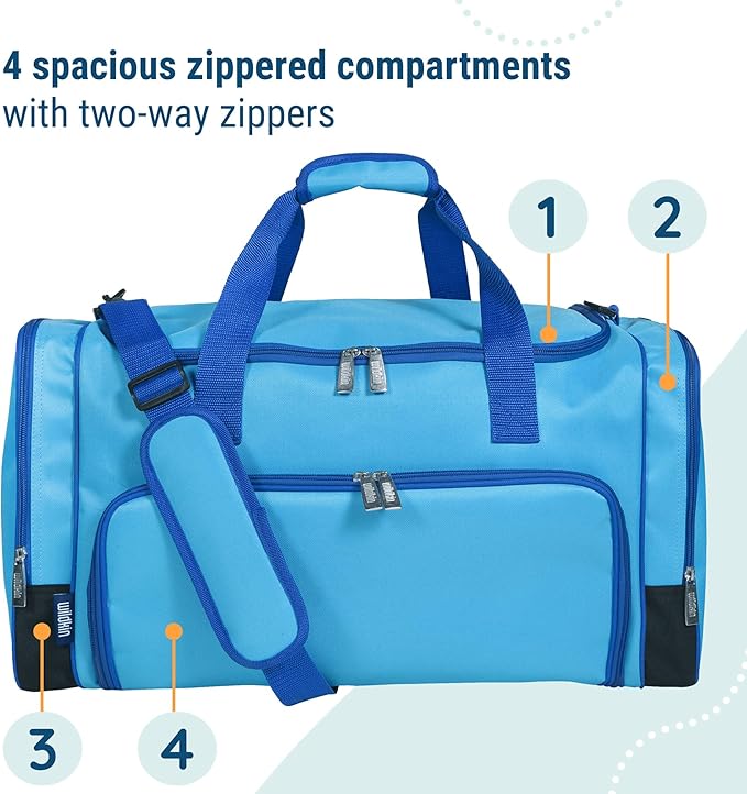 • The Must-Have Accessory – Wildkin’s weekender bag is the ultimate accessory for sleepovers, sports practice, a trip to grandma’s. This duffle bag measures 22 x 12 x 12 inches, its roomy design easily fits your child's needs.