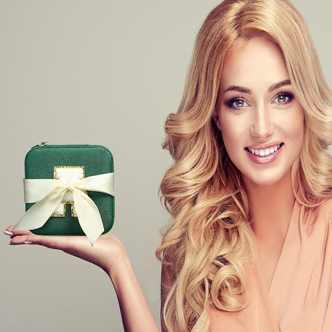 Parima Travel Jewelry Organizer for Women | Necklace, Earring, Ring Organizer | Women's Travel Gifts - Letter Q, Green