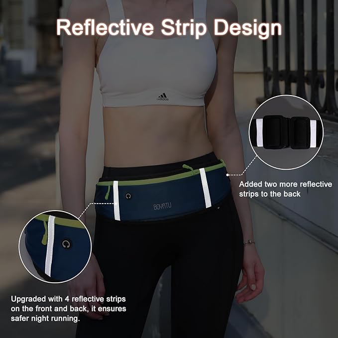- Reflective and Waterproof: Safety's key with our waist pack's four reflective strips, keeping you visible during those late-night or early morning runs. And if it starts to rain, no sweat your phone, headphones, keys,cards and cash stay safe and dry.